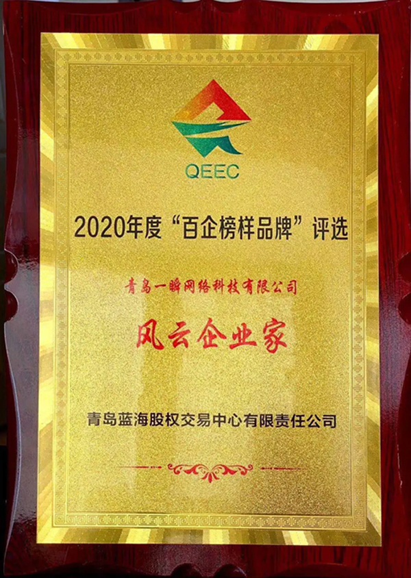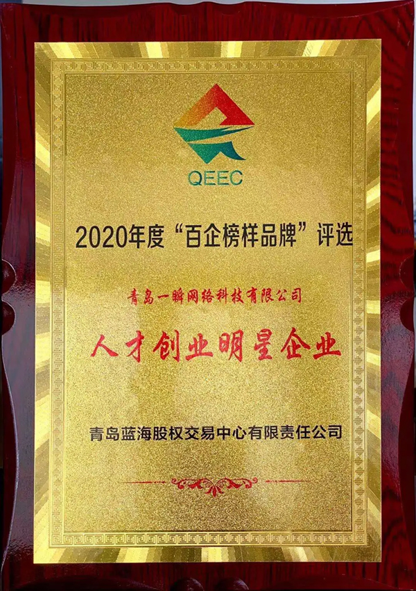 2021年6月30日,青島藍海股權(quán)交易中心舉辦的第六屆“藍海風(fēng)云榜”之2020年度“百企榜樣品牌”評選活動中,青島一瞬網(wǎng)絡(luò)科技有限公司被評選為“風(fēng)云企業(yè)家”“人才創(chuàng)業(yè)明星企業(yè)”。